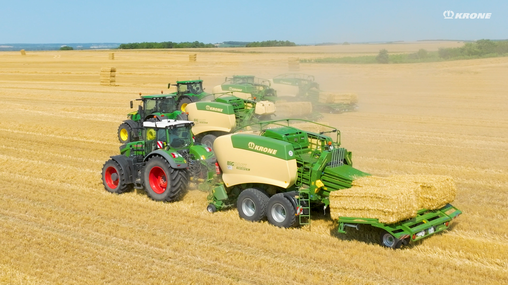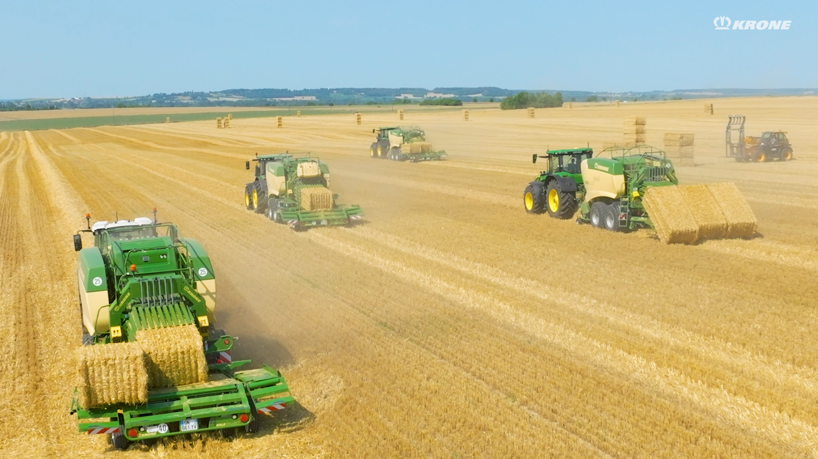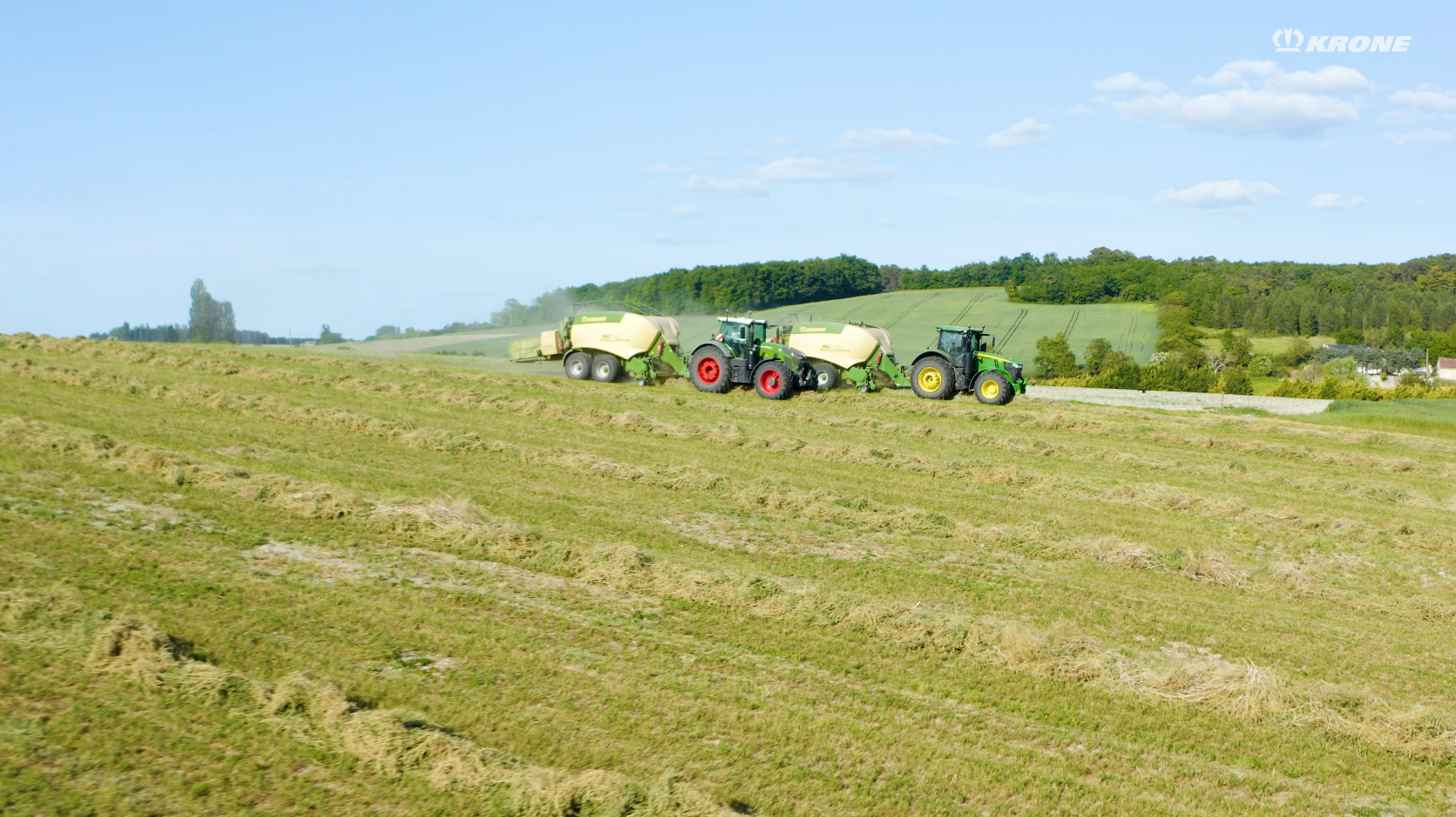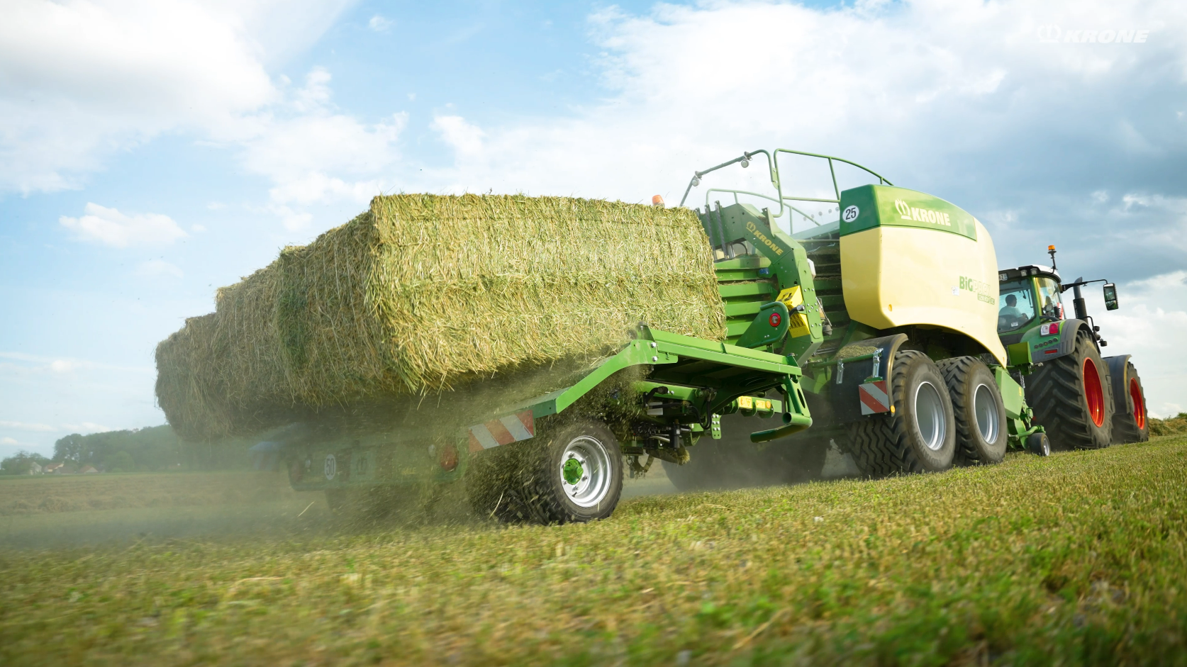 En complément de ces presses, une partie de la flotte a été équipée de regroupeurs BaleCollect, une alternative innovante aux chargeurs télescopiques. Cette solution a permis des économies en termes de coûts tout en maintenant une efficacité opérationnelle élevée. Fortement convaincue des avantages de ce système, l'entreprise envisage même d'augmenter sa flotte de presses KRONE équipées du BaleCollect.