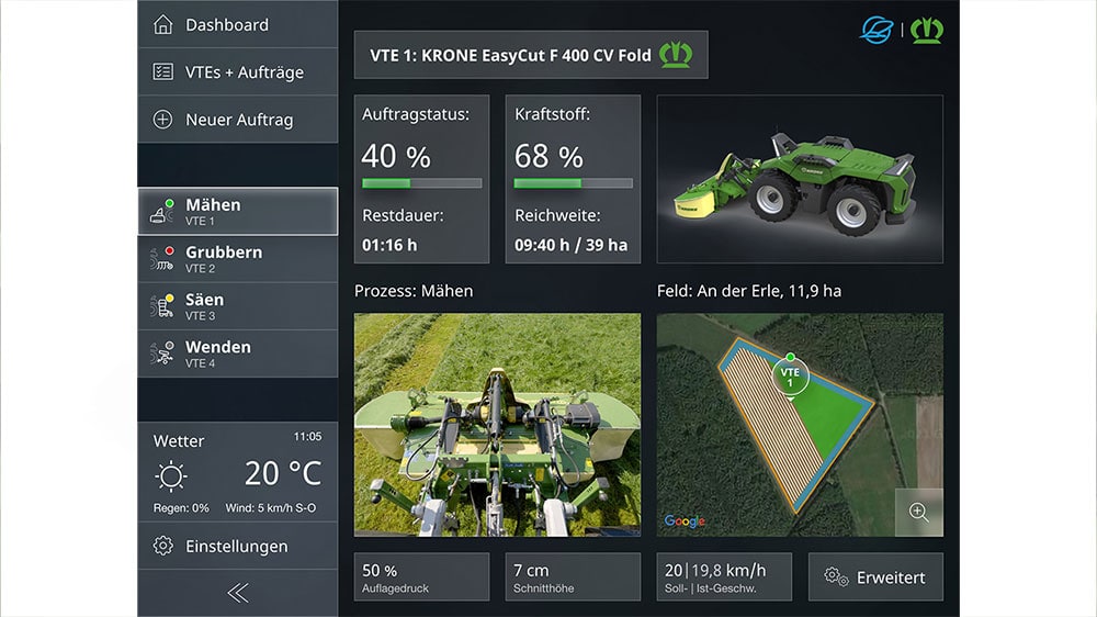 The speciality about the process unit is that the unit is controlled by the attachment and not the other way round. This approach was considered as the primary requirement for achieving optimum results. As such, the attachment and the process unit behave like one smart and homogeneous unit. Benefitting from the long experience in the application of ISOBUS and TIM on KRONE and Lemken machines, the drive unit and the implement communicate and interact, sharing literally all types of data.