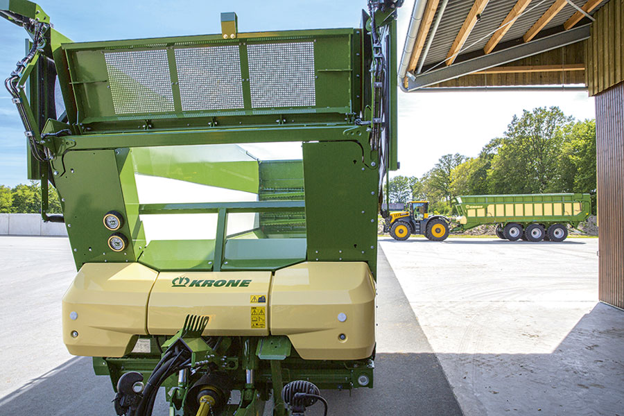 Further stand-out features refer to general road safety and include the double lights at the rear. Reflective strips all-round are available as an option for good visibility at night. Crop covers are also available to ensure no material is lost in transport and no crop is lost on the way to the clamp.