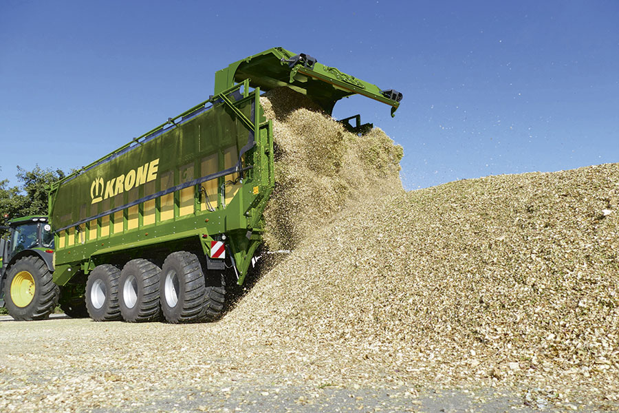 This system allows operators to enter the length of the silage pit. From then on, the unloading rate is controlled automatically relative to the tractor’s forward speed. When the machine reaches the end of its preset course it is cleared out completely.