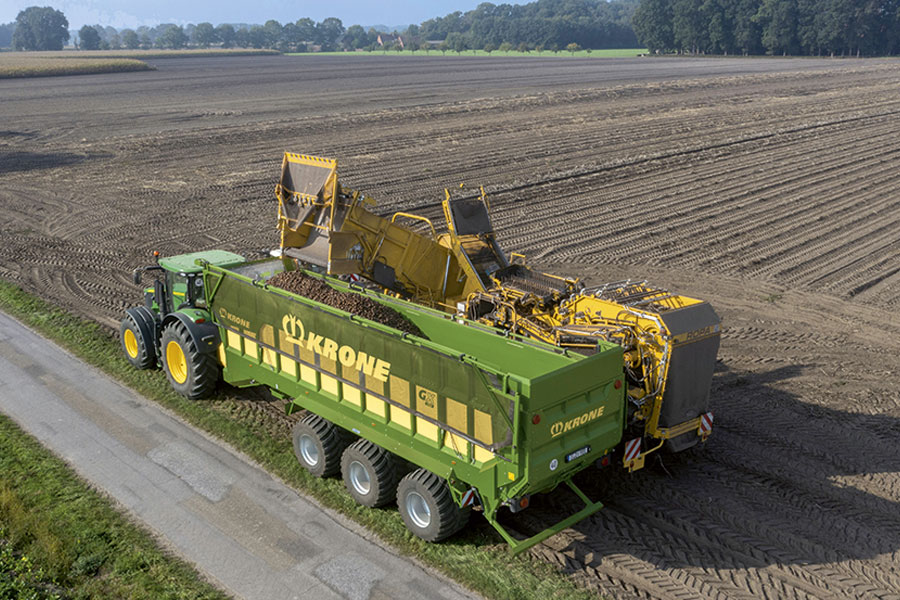 A world first: KRONE ExactUnload rate control unloads by distance travelled