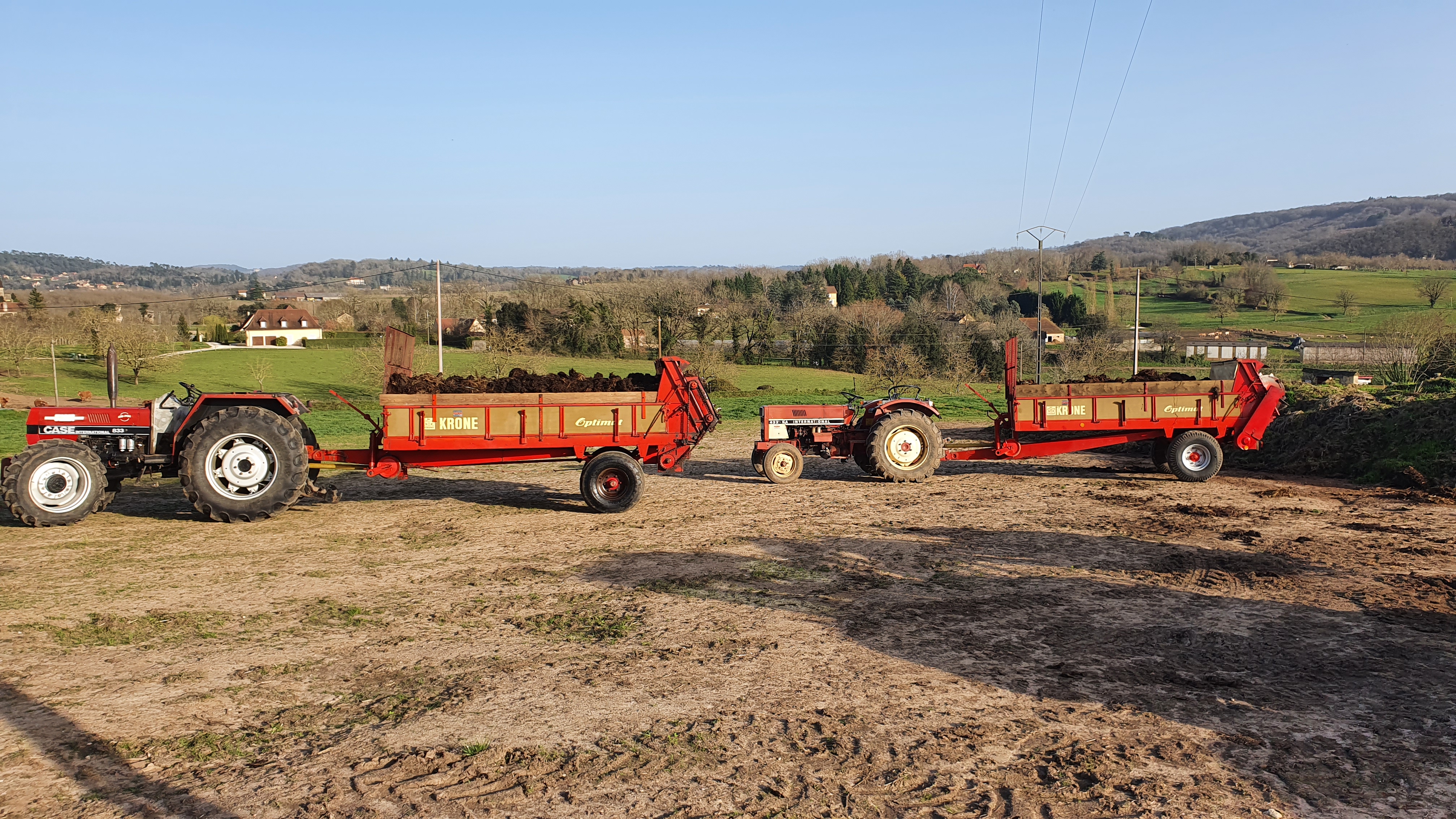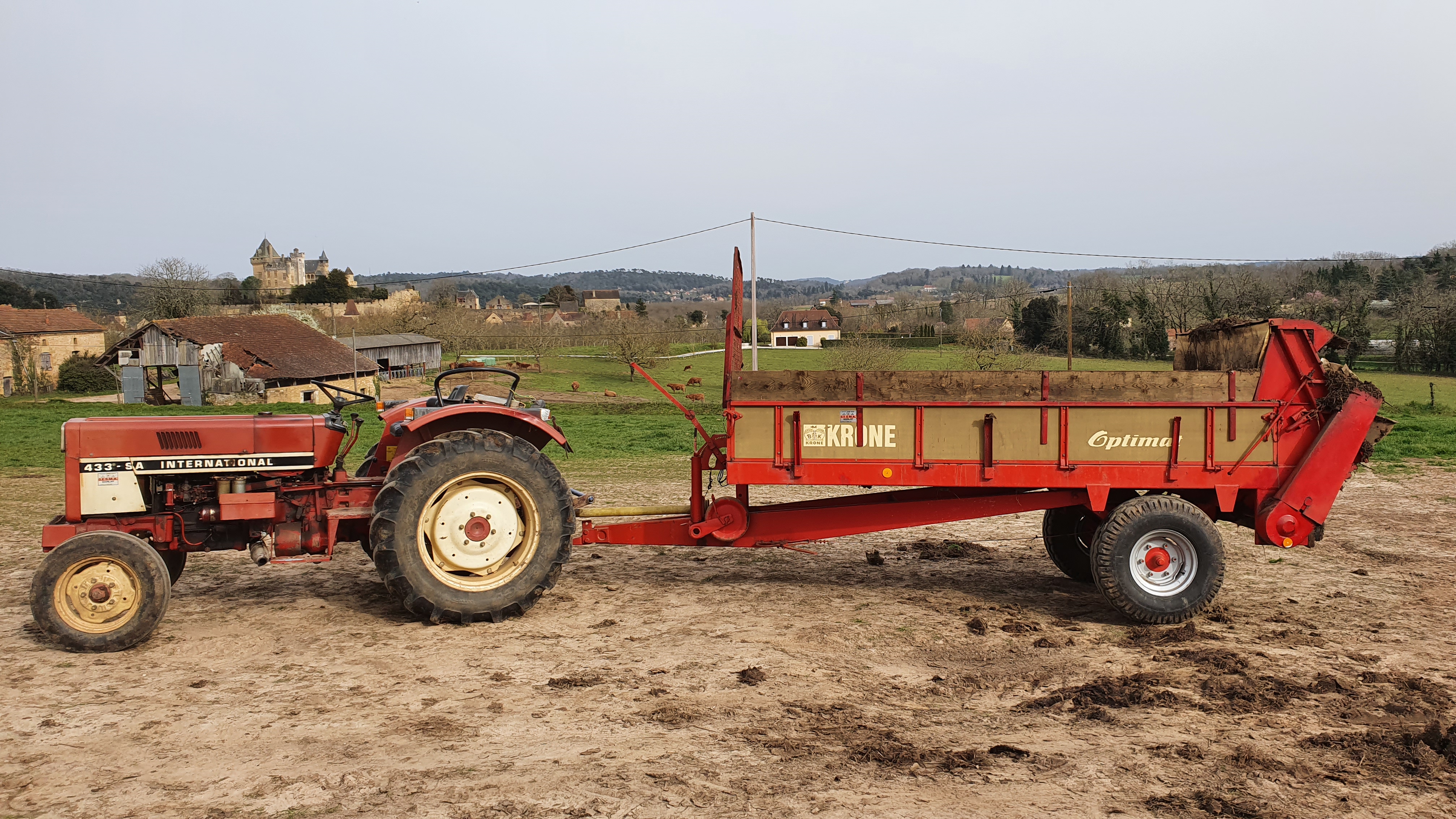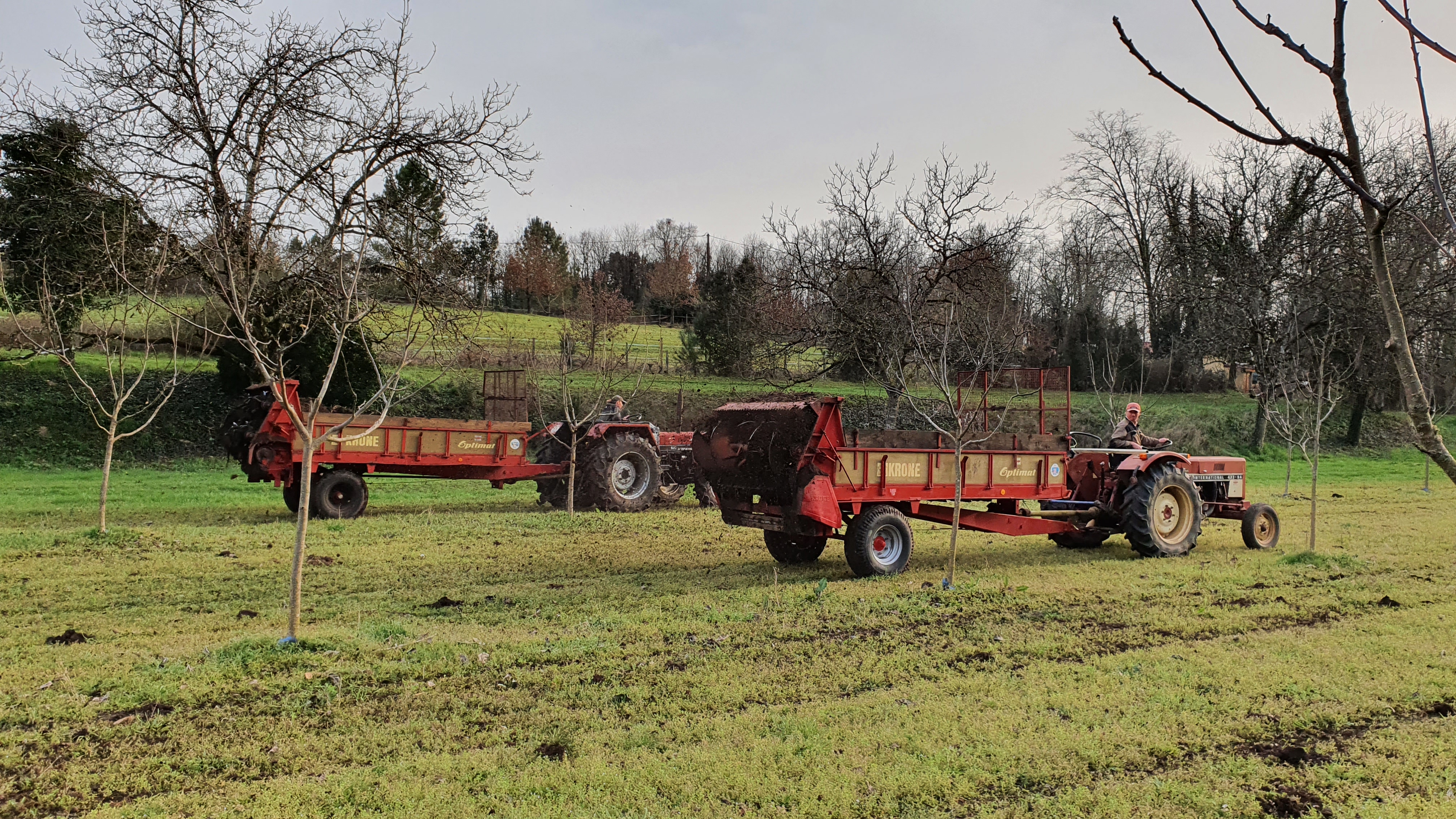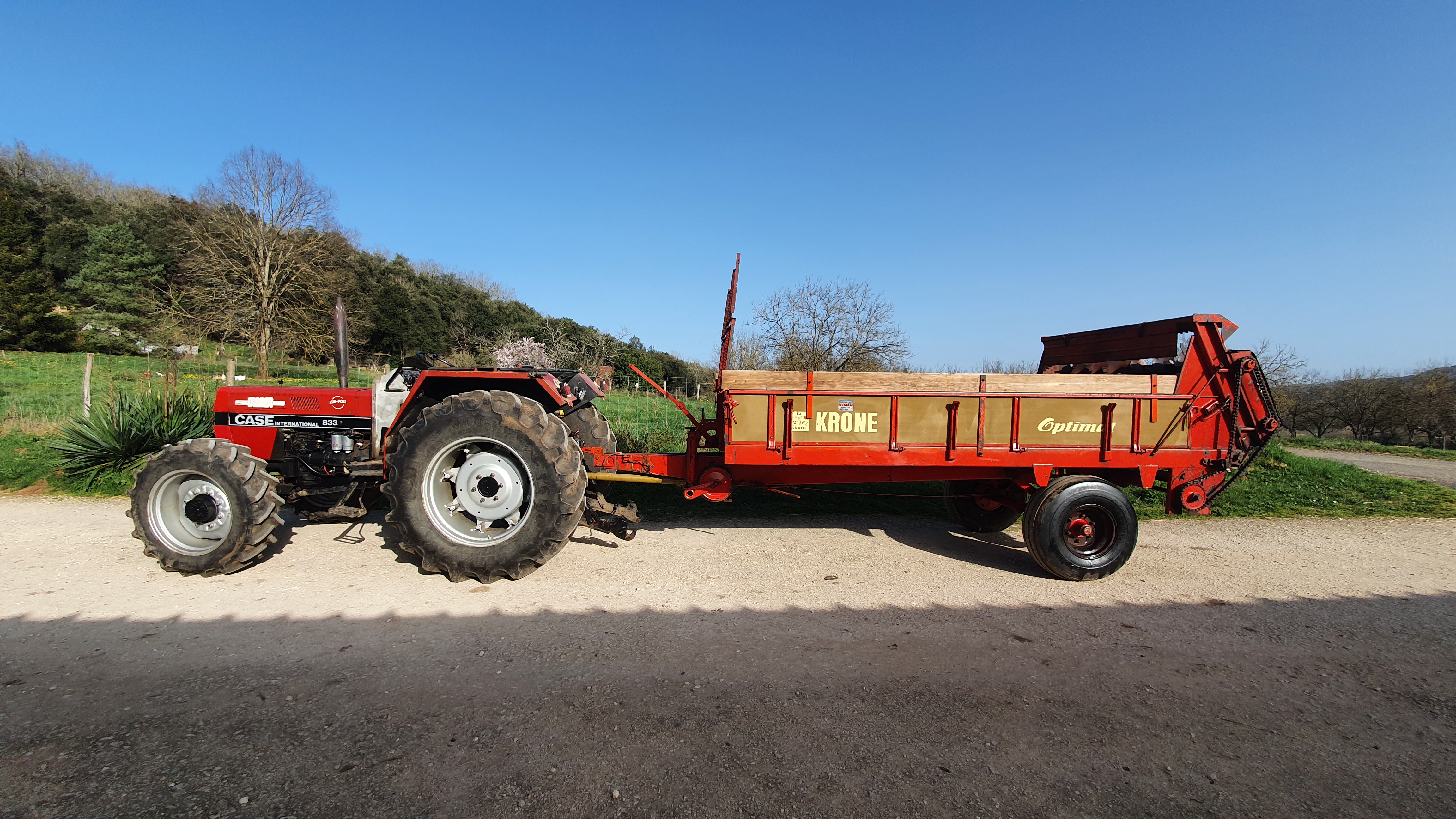 C’est notamment grâce à son père que Clément a pu faire l’acquission de deux épandeurs KRONE Optimat. Les épandeurs ont plus de 35 ans mais ils épandent pourtant plus de 350 tonnes de fumier chaque année. Ils sont principalement utilisés pour les 16 hectares de noyers. Il faut dire qu'avec leur taille réduite, les Optimat sont particulièrement adaptés pour passer entre les arbres !