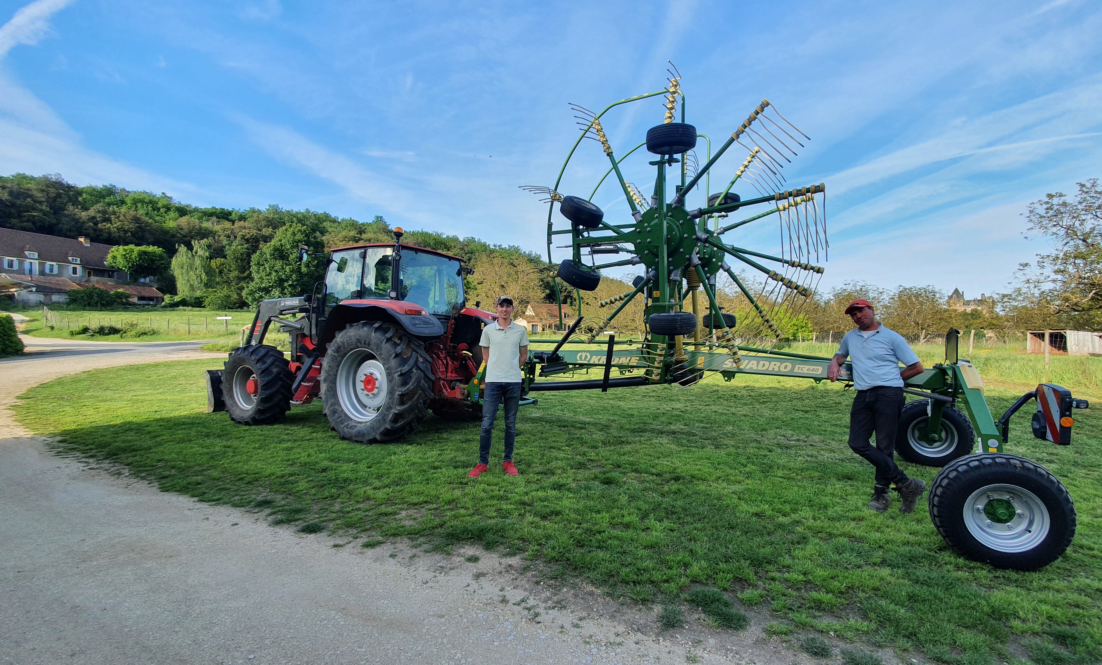 Enfin, plus récemment, Clément a fait l'acquisition d'un andaineur KRONE Swadro TC 640. Depuis plusieurs années Clément et son père son fidèle à la marque KRONE pour sa qualité et sa robustesse !