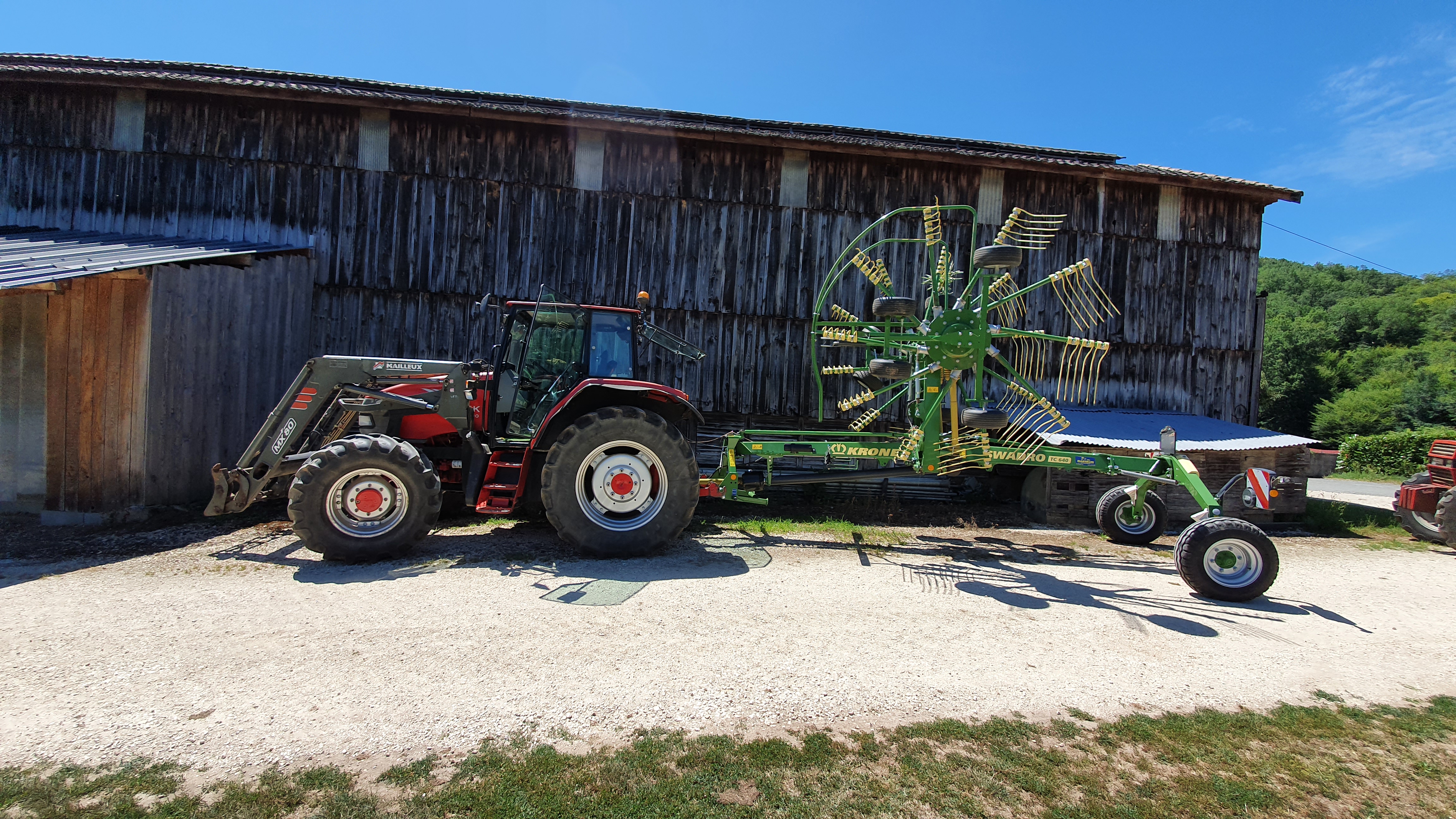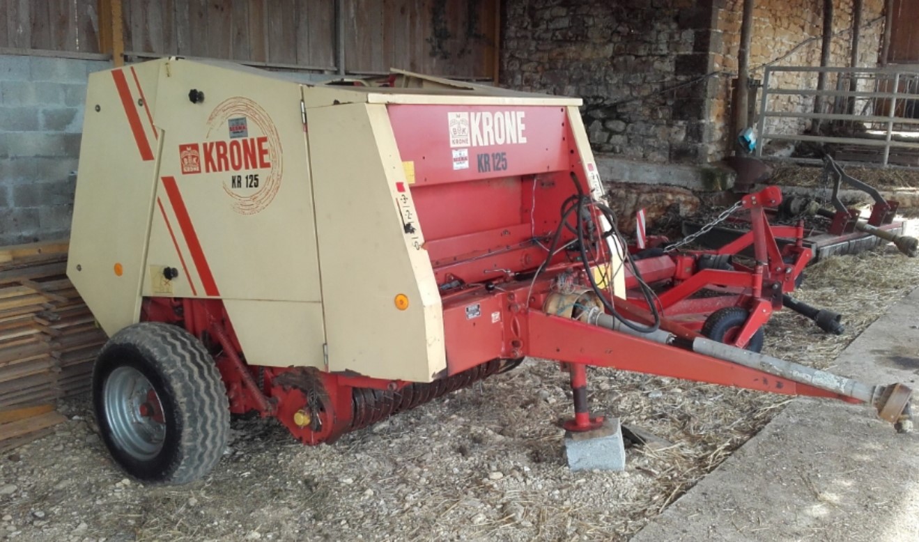 Ce ne sont pas les seuls outils KRONE de la ferme, Clément possédait également une presse KRONE KR 125 de 1988. Cette presse faisait encore 400 bottes par an en 2017, quand elle a été vendue, prête à travailler dans une autre ferme !