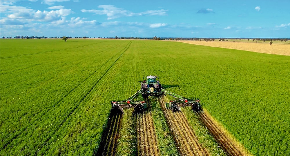 CTF is becoming increasingly popular not only in Australia but also in Europe. Controlled traffic means that all machines run in the same wheelmarks for better protection of the valuable soil and reduced compaction. The scheme is particularly beneficial in sensitive crops such as alfalfa.