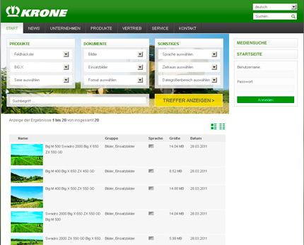 “The Krone Media Center features a new design and even more content. The number of documents stored is growing constantly and as rapidly as the number of users is growing. Our on-line service engineers are currently recording several hundred clicks per day,” says Heinrich Wingels, Krone’s Marketing Executive.