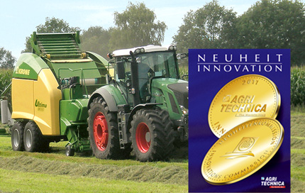 Spelle, 29 September 2011. Representing a breakthrough in round baler technology, Krone Ultima is the first baler wrapper that works fully automatically and non-stop. This means the combination keeps moving during the baling and unloading cycles. The breakthrough innovation has earned Krone a DLG Gold Medal, which it will be awarded at Agritechnica.