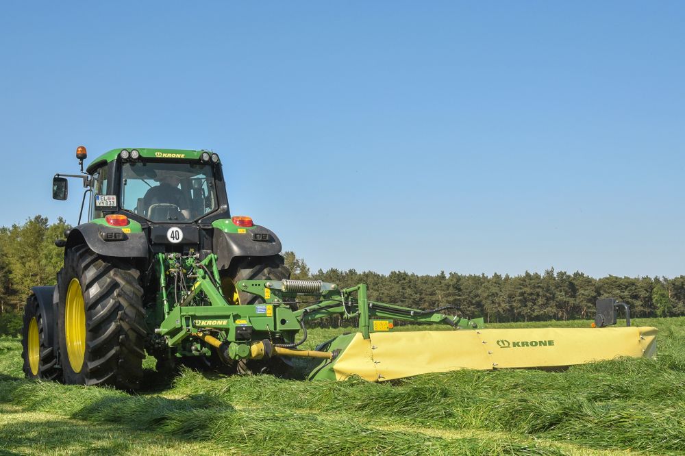 The EasyCut R 400 is a new KRONE disc mower that attaches to the rear linkage and works at a width of 4.04m. The robust headstock, the SmartCut cutterbar for optimized cuts, the individually impact protected SafeCut discs, the dependable break-back system, the spring suspension system and its narrow transport width make the EC R 400 a versatile, safe, straightforward, flexible and productive mower that delivers exemplary cuts.