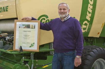 Tractor operator Ewald Vehring and the Krone team celebrated the new world record at the site. “These 60 minutes were sheer stress for me, even though I am quite a seasoned baler operator,” comments Ewald. The holder of the new world record continues with a broad grin across his face: ”When I first looked at the bale counter after half an hour, the count was already seven bales ahead of the existing record. This was when I knew that we were going to set a new world record today."