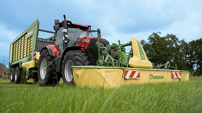 Dairy farmers are looking into the potential of fresh grass for increasing milk yields from the basic ration. In view of rising silage storage costs, hay milk production programmes and further aspects fresh mass is being viewed from a different angle today. This new approach is supported by KRONE who offers the ideal machines that help you cut and feed highly valuable fodder every day. Combining the EasyCut F 400 CV Fold mower with the MX 330 GD forage wagon makes a powerful punch.