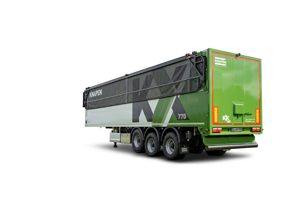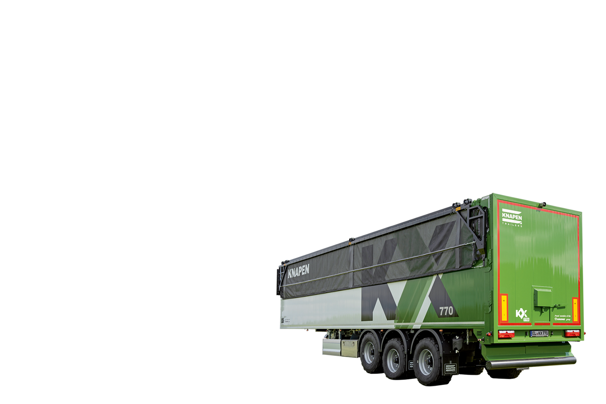 The Dutch company KNAPEN specialises in moving floor trailers and offers the KX series in cooperation with KRONE. This series comprises two moving floor trailers which have been specially designed for the agricultural sector. With load volumes of 65 m³ or 77 m³, they are the ideal companions for long transport distances. The Power Speed floor enables a fast unloading duration, thereby ensuring outstanding efficiency and power.