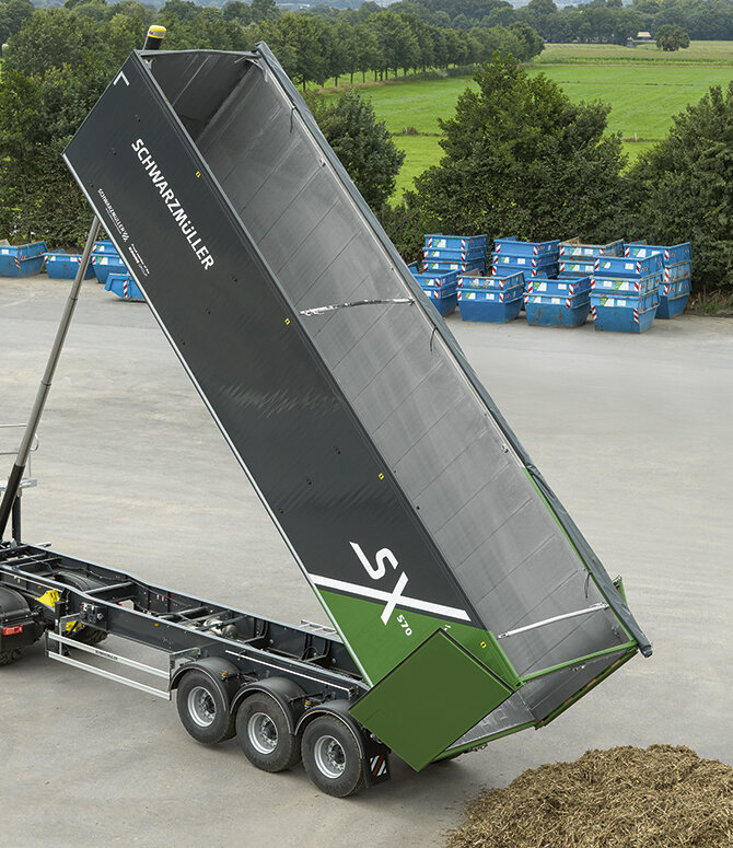Maschinenfabrik Bernard KRONE GmbH & Co. KG is consistently expanding its involvement in the agricultural logistics sector. With the new Schwarzmüller SX, KRONE is launching an efficient large-capacity aluminium dump truck for the agricultural lorry, which has been specially developed for professional use in the agricultural transport logistics sector.