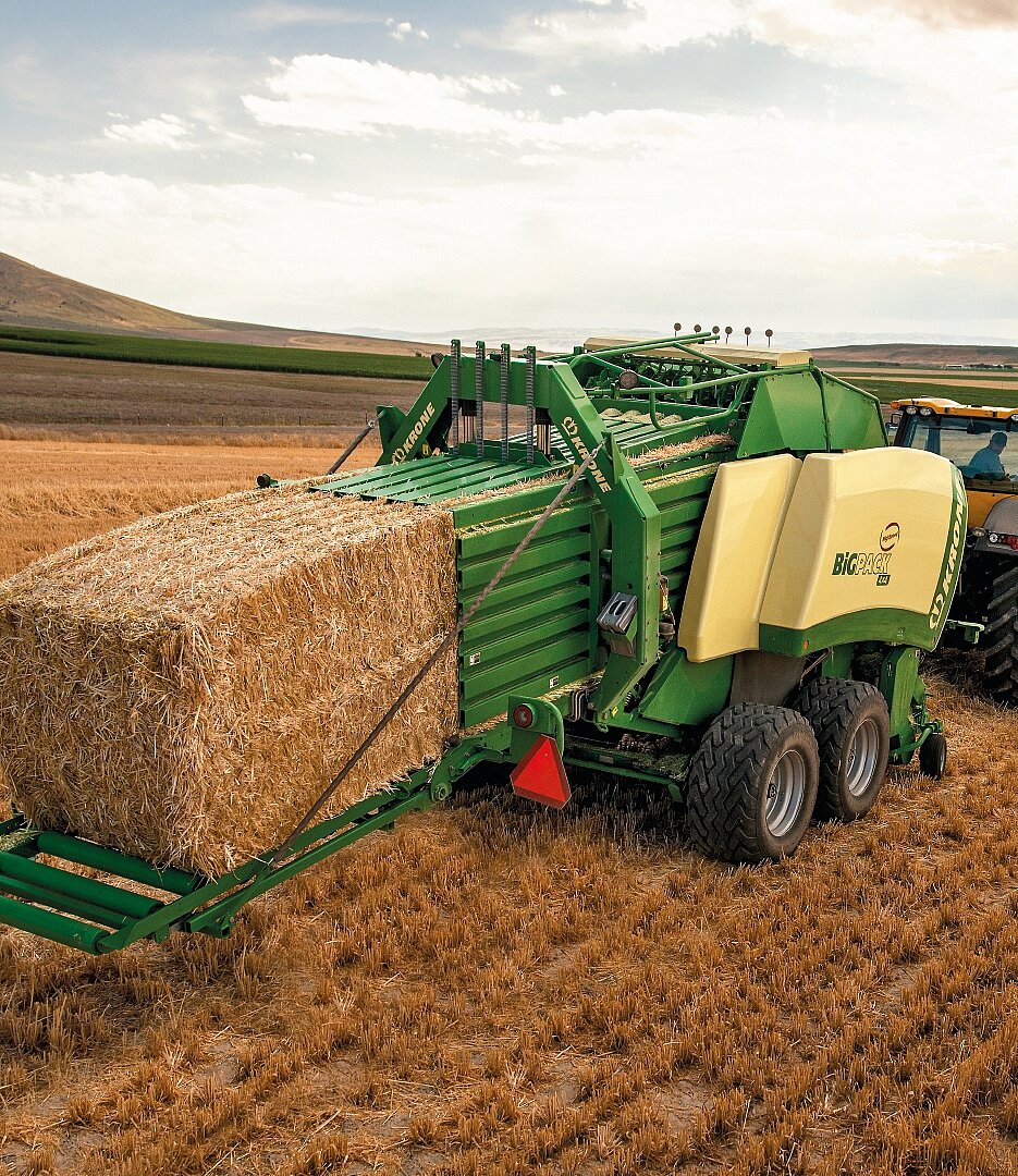 One step ahead – with a KRONE BiG Pack. Whether you are making heavier, rock-hard bales with the BiG Pack HDP II or tying up to nine small bales neatly into one big bale with the MultiBale system, you’ll always be ahead of the field, using first-time innovations you won’t find anywhere else.