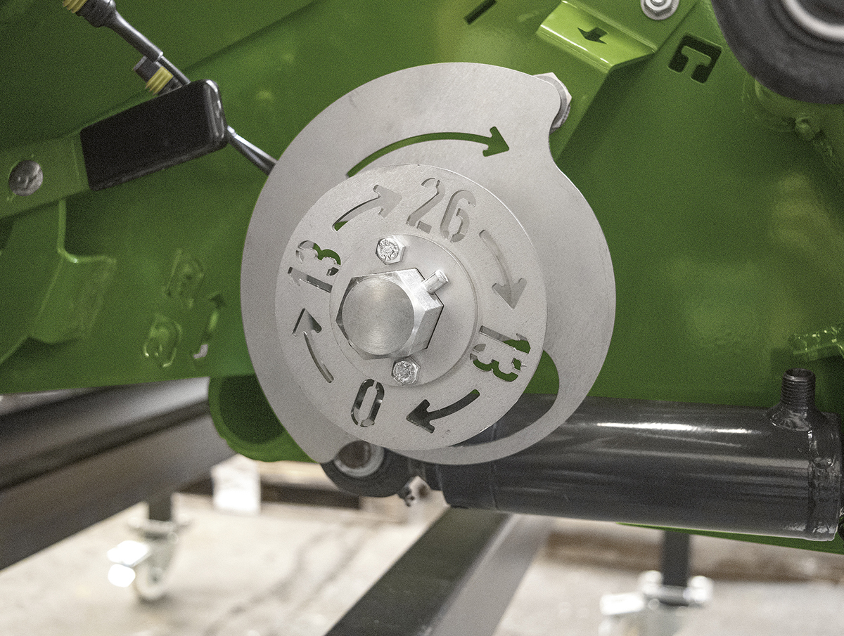 This dog clutch on the right machine side can cut the power flow to the intake system which stops rotating so you can finish a bale despite a blockage in the intake system. At the same time, the rotor revolves freely to give ready access to the blades.
